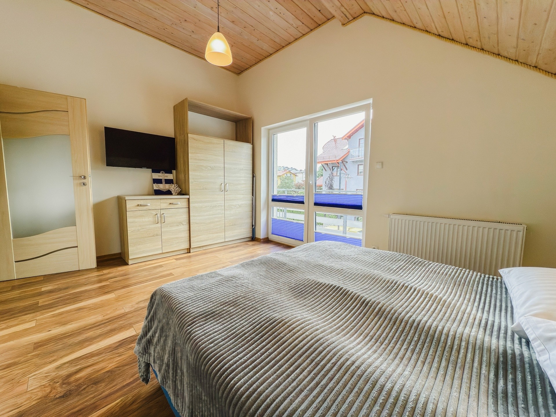 Znajduje się na podwyższeniu, wchodzi się do niego po 3 schodkach. Daje to możliwość zakwaterowania w tych apartamentach pięciu osób. Do sypialni przylega balkon.