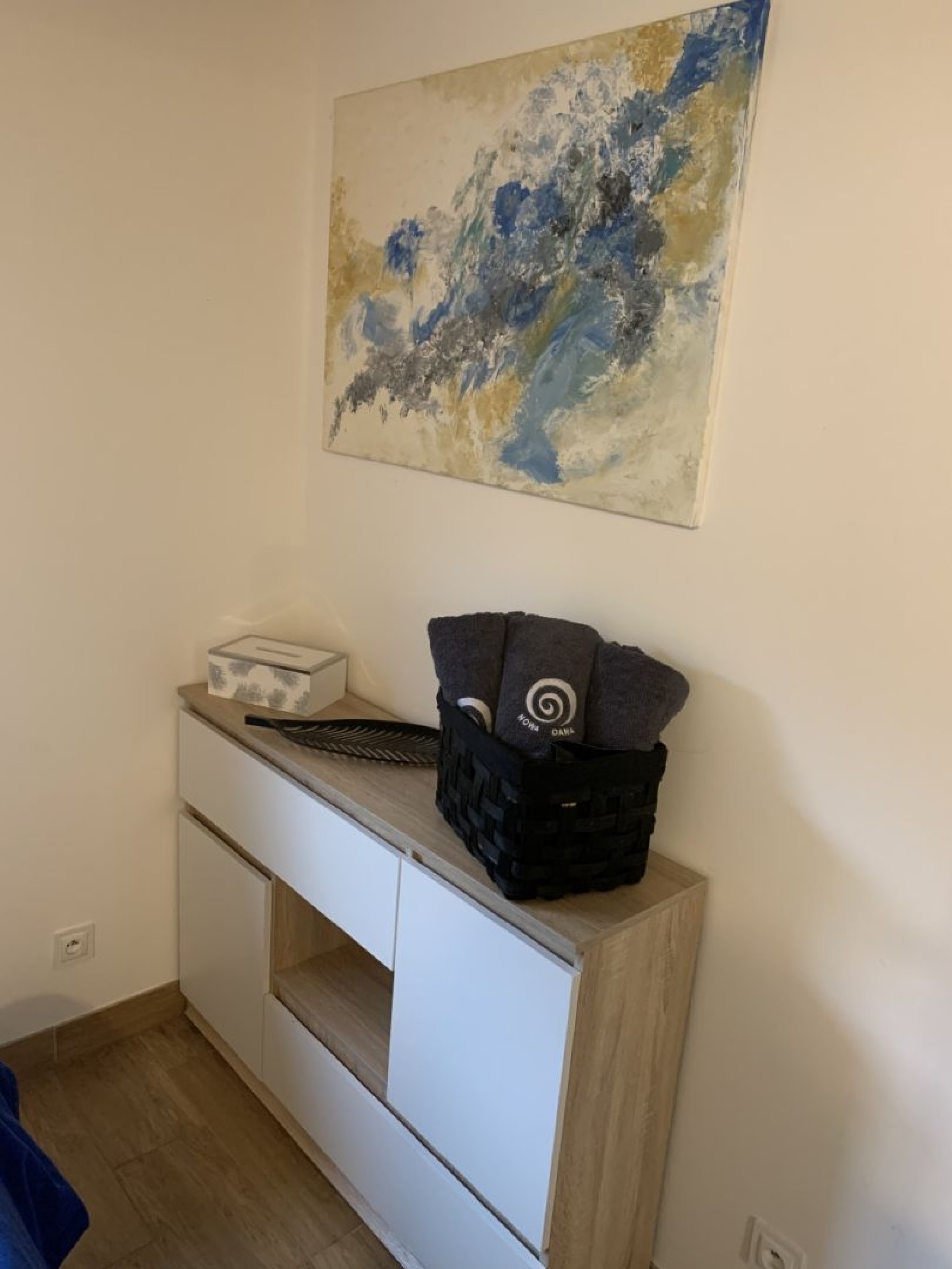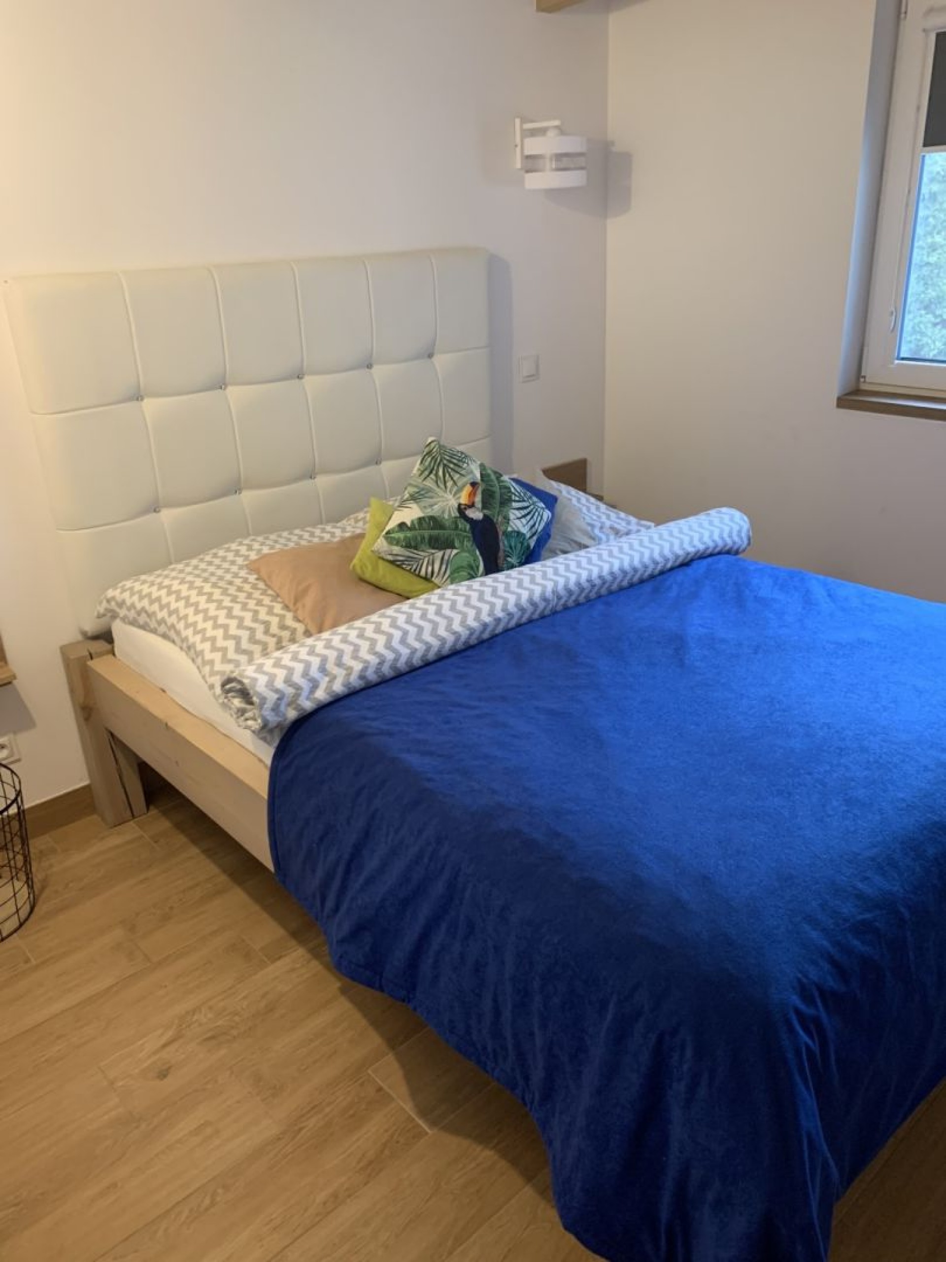 W sypialni znajduje się szerokie i bardzo wygodne łóżko dwuosobowe, a łazienka jest bardzo przestronna i komfortowo wykończona.