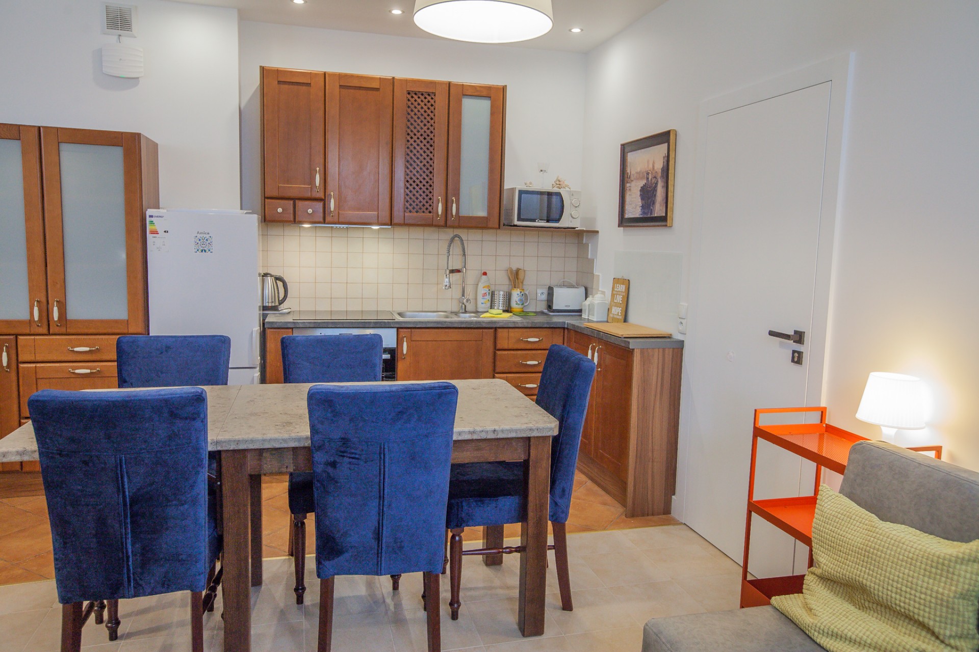 We wszystkich pokojach znajdują się naczynia, sztućce, czajnik, lodówka, suszarka do włosów.