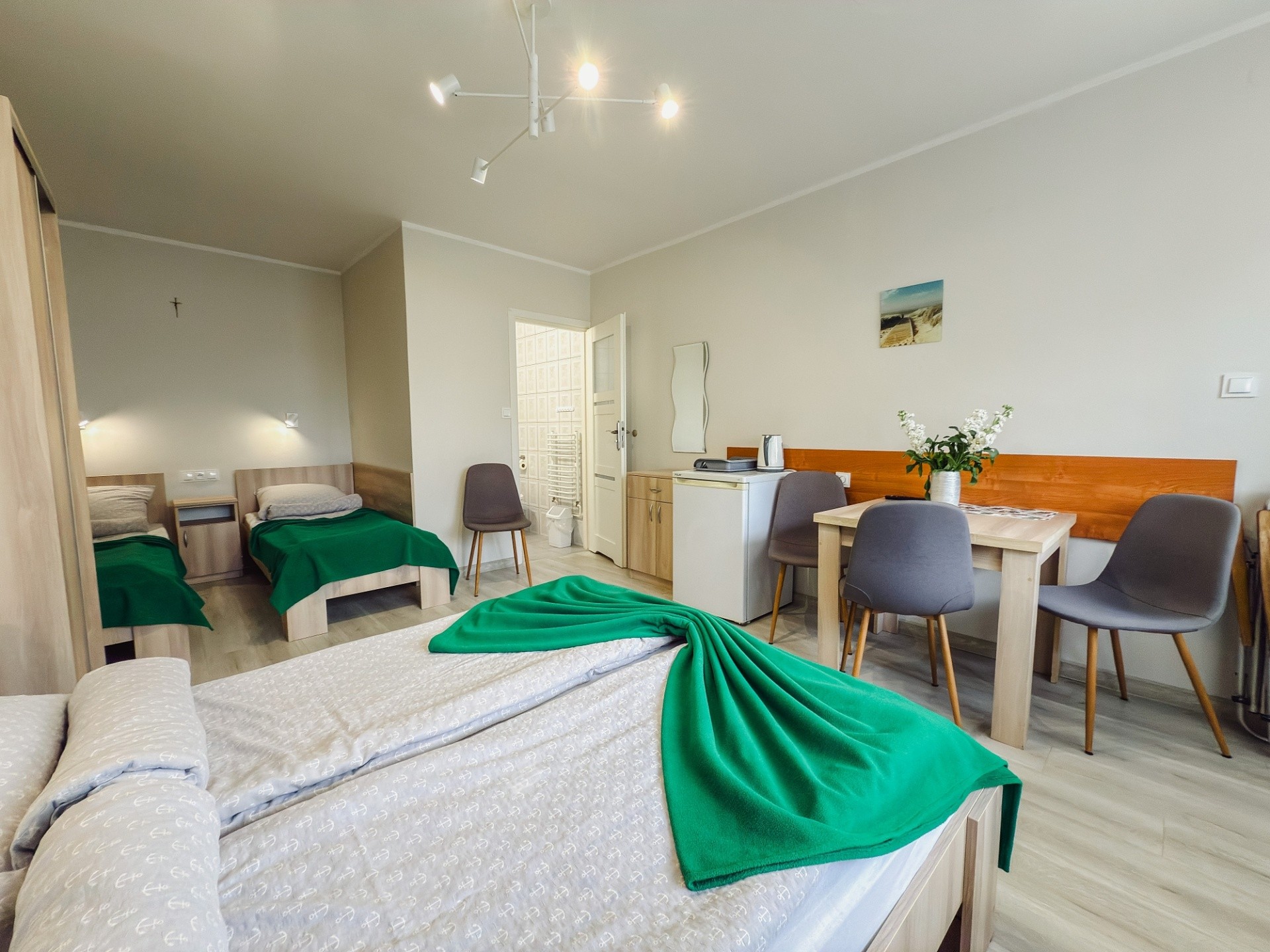W naszej ofercie posiadamy czteroosobowe studio oraz komfortowe pokoje gościnne przeznaczone dla 2, 3 lub 4 osób.