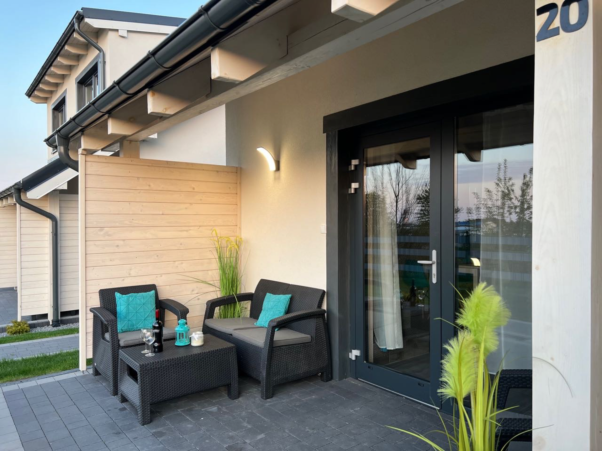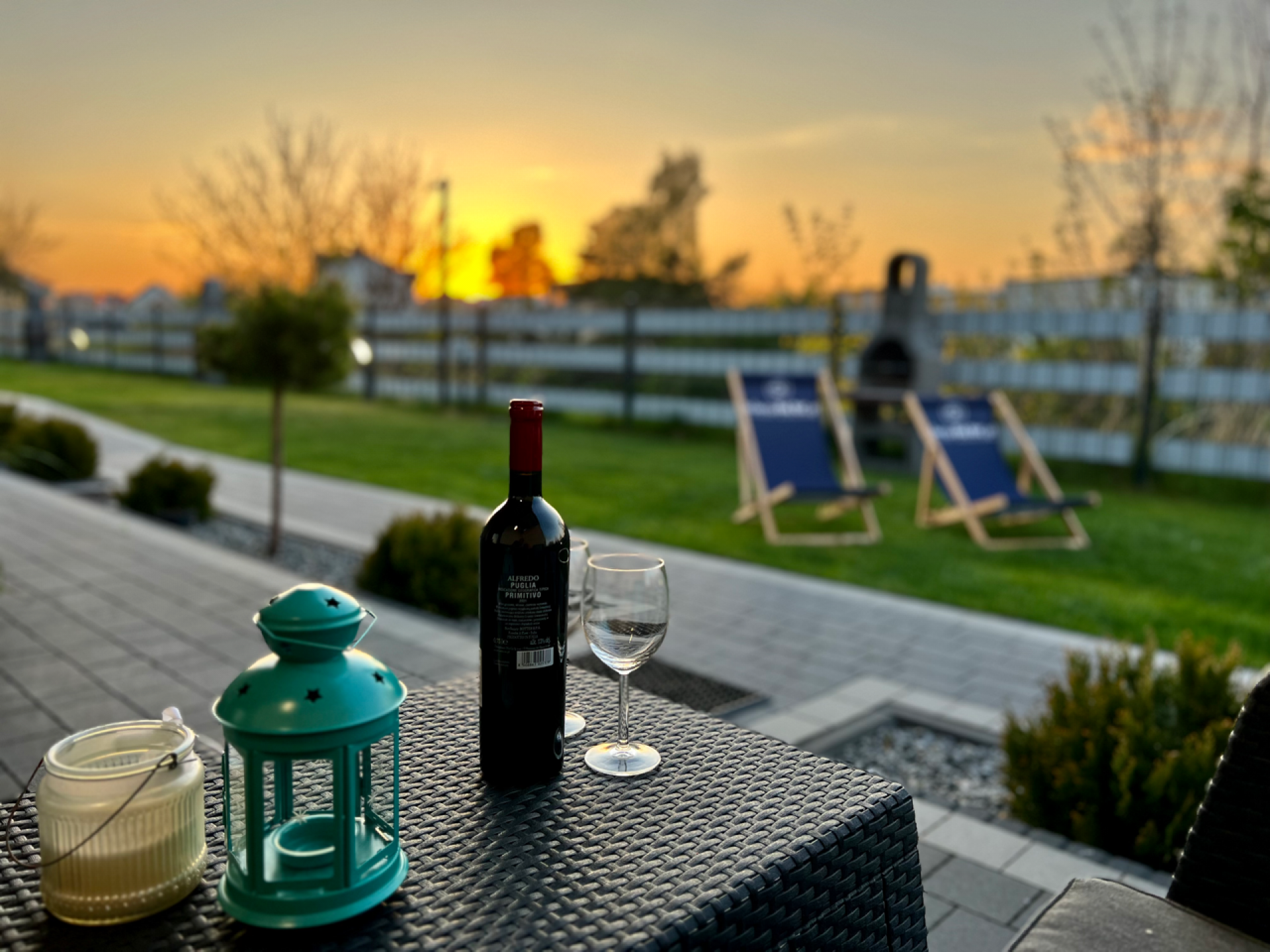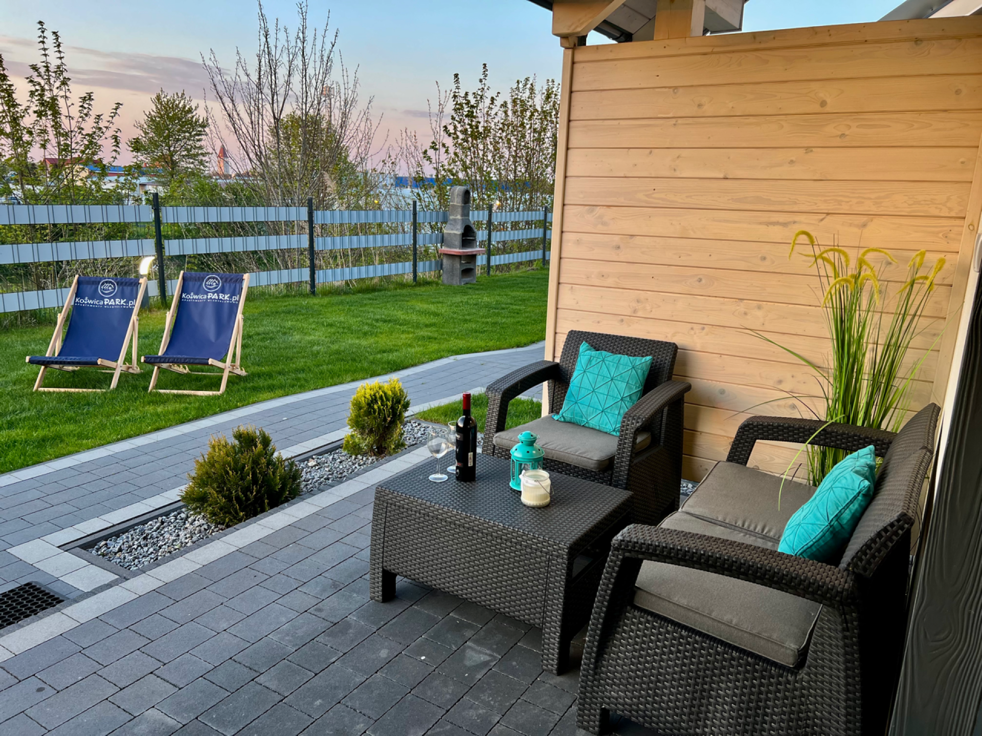 Każdy z naszych domków posiada salon z bogato wyposażonym aneksem, dwie sypialnie, nowoczesną łazienkę oraz taras z częścią wypoczynkową i grillem.☀️