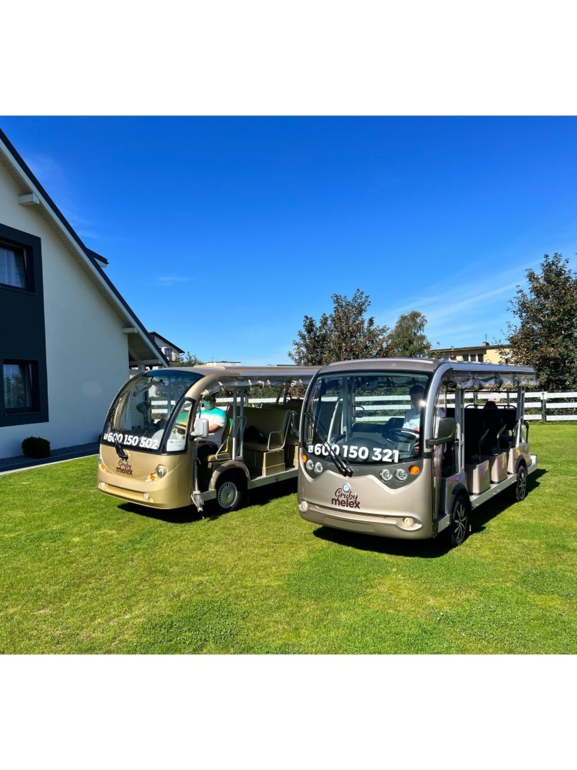 W miesiącach lipiec oraz sierpień wprowdziliśmy dla naszych Gości bezpłatny transport MELEXEM z pod domków na plaże.